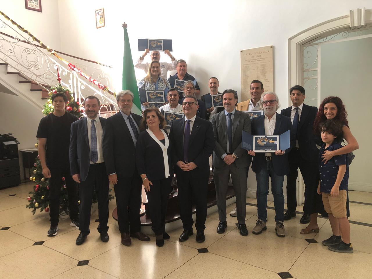 Consegna di una targa a nove chef e ristoratori italiani in Costa Rica