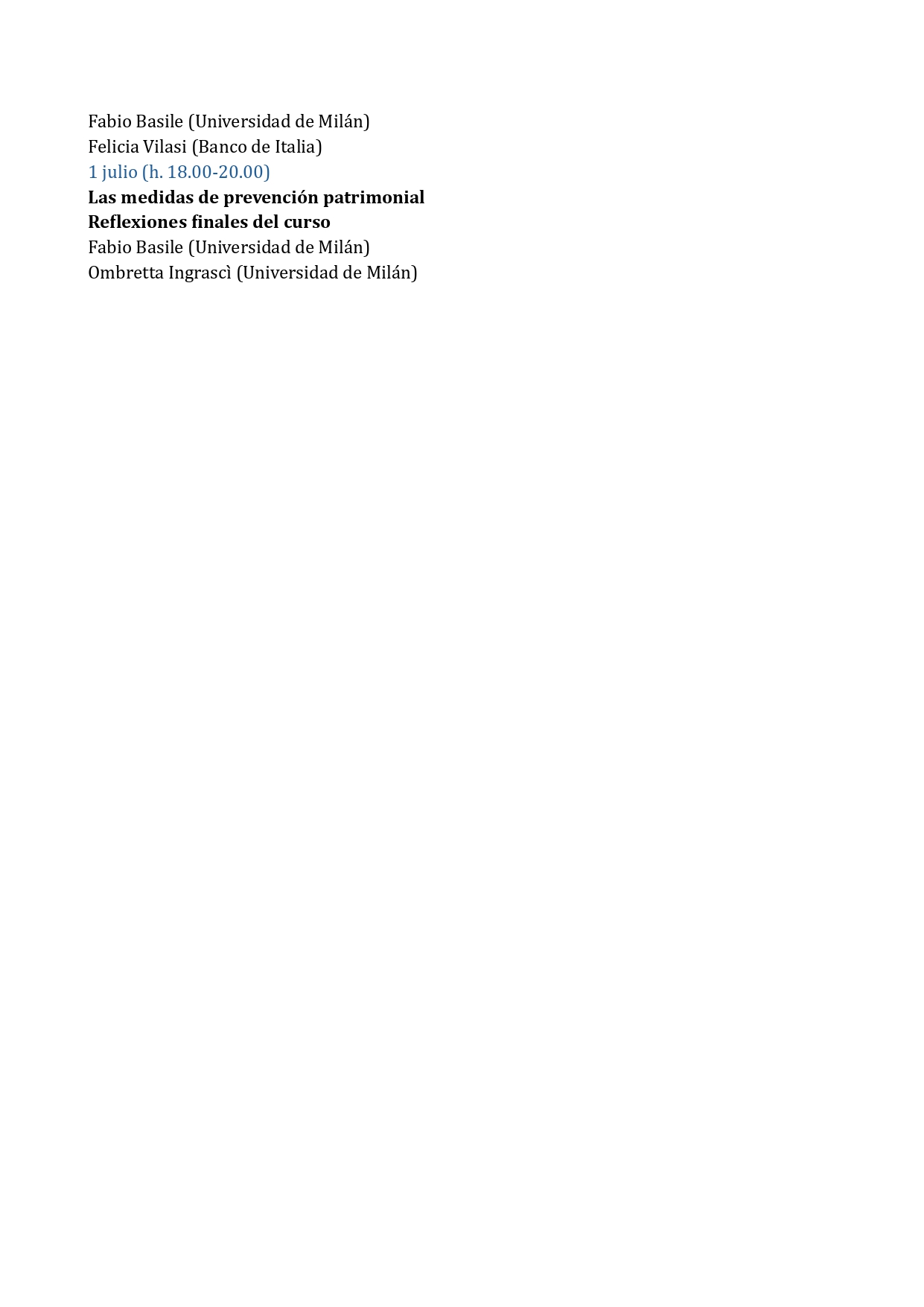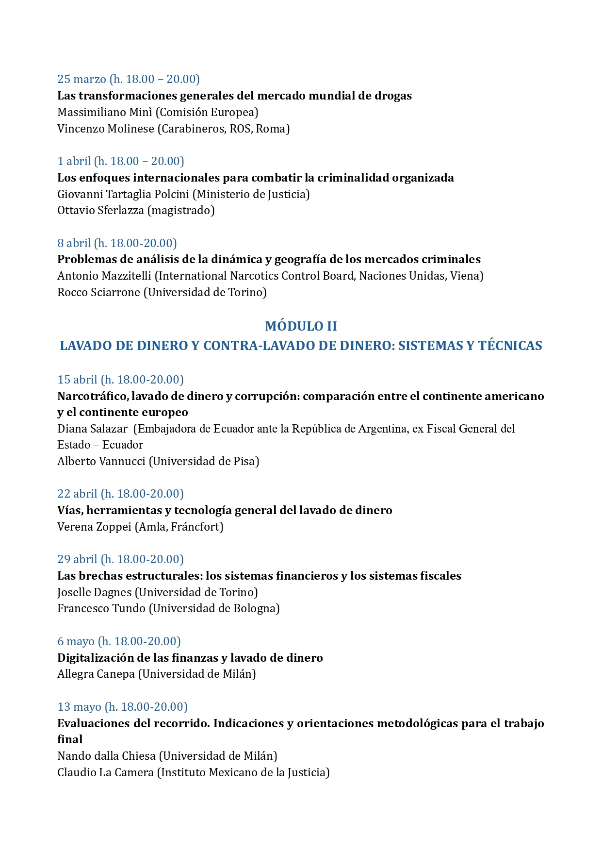 • Modalidad: Online, en italiano y español con traducción.