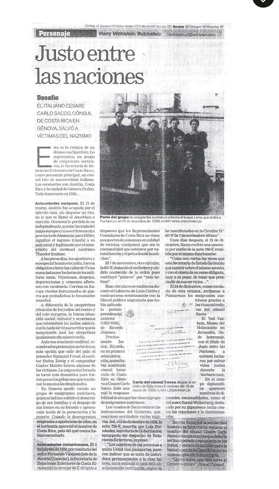 La storia del console Cesare Carlo Sacco si colloca nel drammatico contesto europeo del 1938, segnato dall’espansione del nazismo e dalle persecuzioni razziali contro gli ebrei. In quel periodo, molti ebrei tedeschi e austriaci cercavano disperatamente un paese che fosse disposto ad accoglierli per sfuggire alle violenze e alle discriminazioni. In questo scenario, Sacco, console generale della Costa Rica a Genova, svolse un ruolo decisivo e profondamente umanitario.