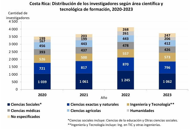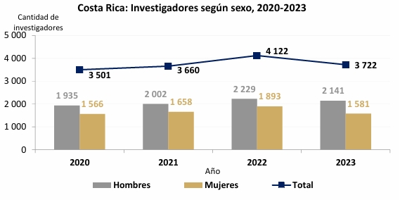 Nel 2023 il Costa Rica contava 3.722 ricercatori, di cui 2.141 uomini e 1.581 donne